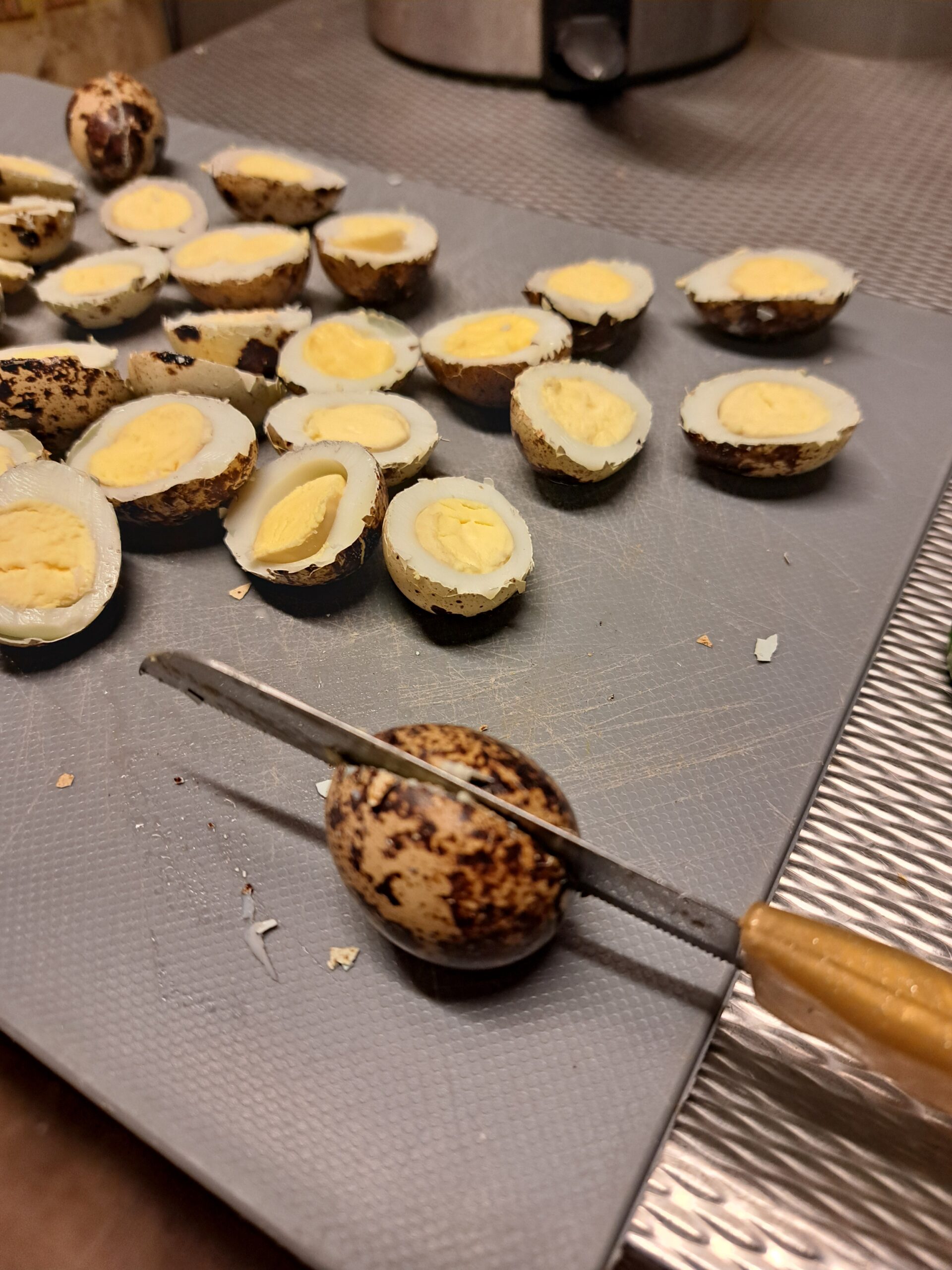 Dankzij onze blije kipjes hebben we altijd héle verse eitjes. Die zijn vaak lastig te pellen. En de kwarteleitjes, waar je enorm schattige gevulde eenhapseitjes van kunt maken, zijn meestal nog lastiger. Maar we hebben er iets op gevonden.
